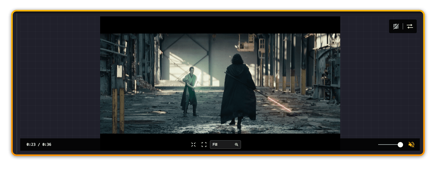 The majority of the space above the timeline is for your Video edit. Once you load a video, hover over it to control its display size, adjust the volume and mute/un-mute it.