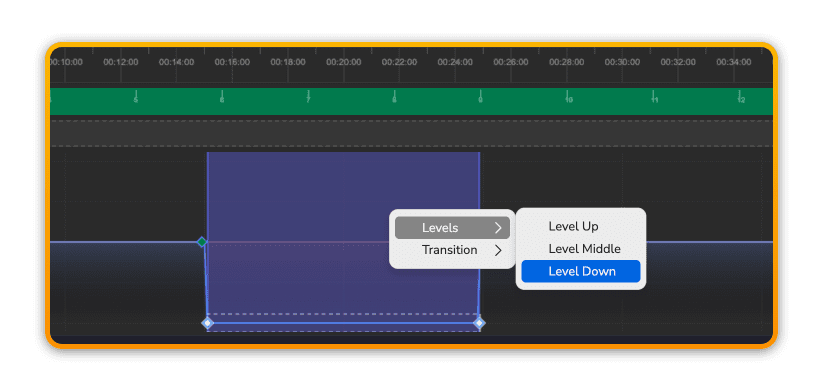 You can make offline level changes by selecting an area in the Timeline and then moving the Scoring Sliders up or down to the desired level.