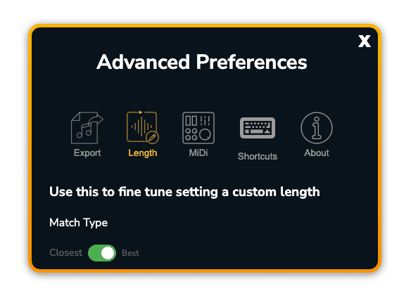 The Music Length settings preferences allow you to make changes to the algorithm’s behaviour when changing the music to your desired custom length.