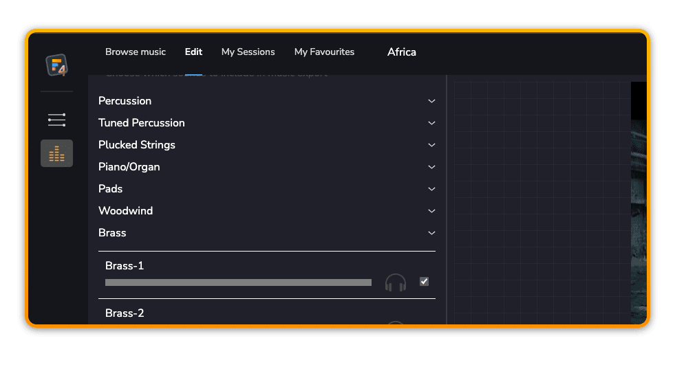 Many of our tracks have convenient instrument groupings that allow you to more quickly find the specific instrument or sound you want to remove from your mix.