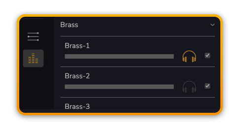 ?You can tell if a particular instrument is playing at any given Scoring Slider position by checking the level indicator.